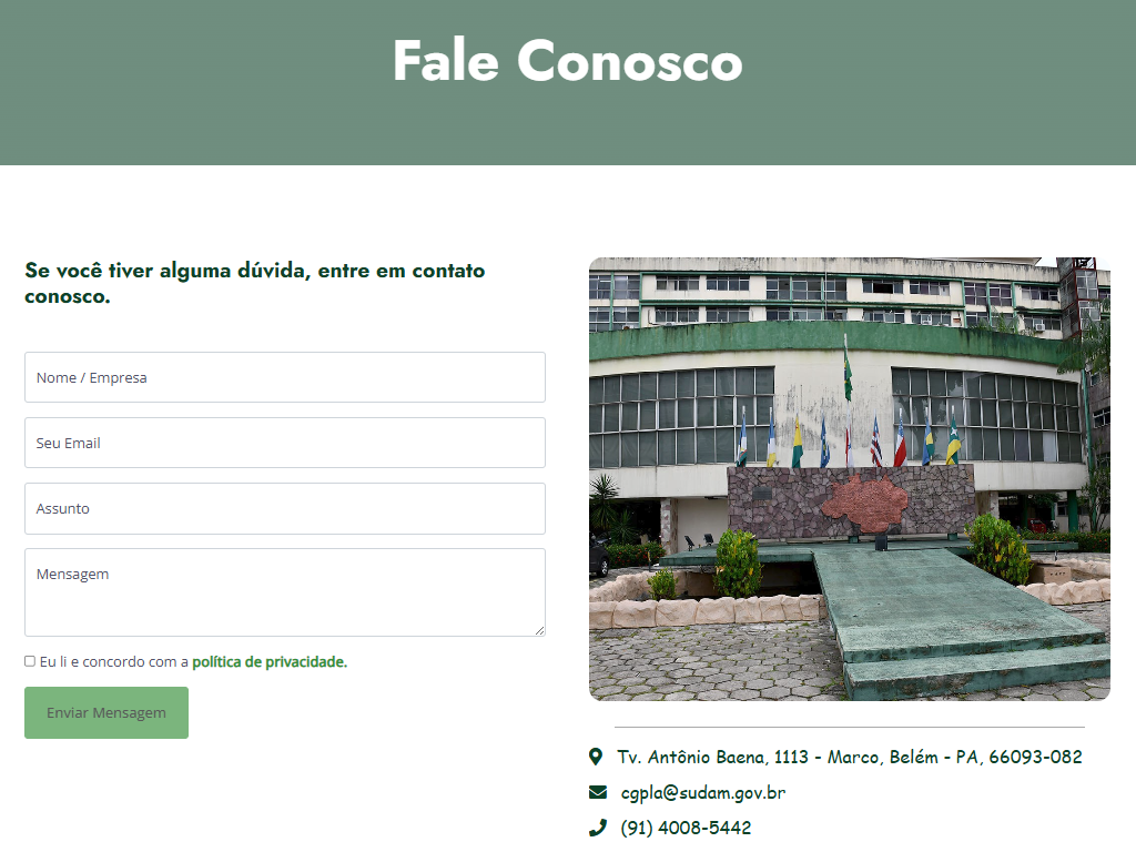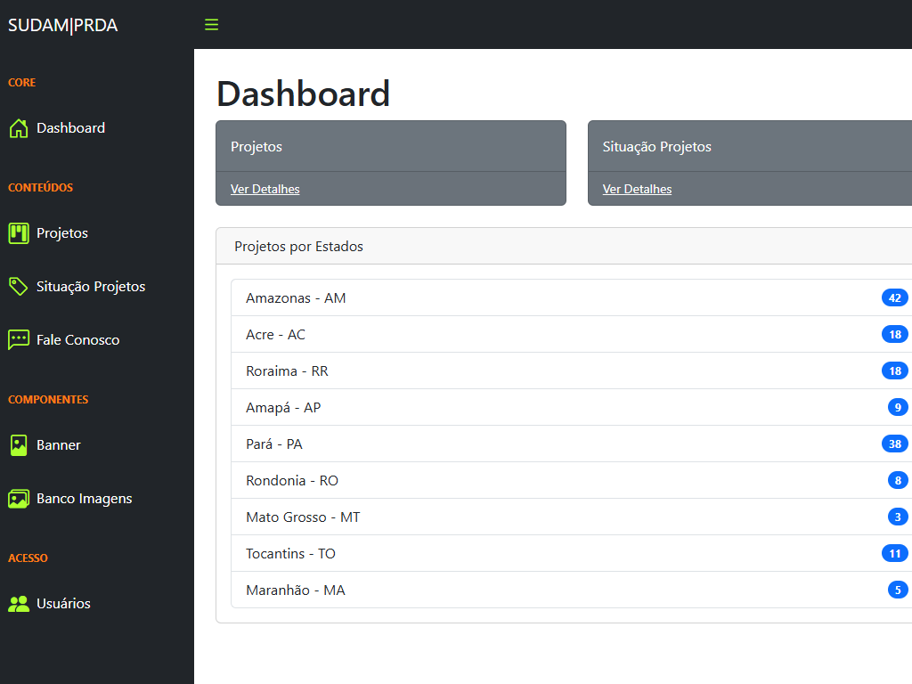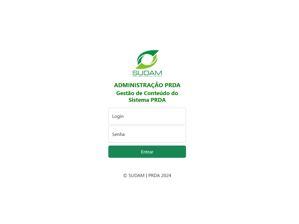 Atuei no desenvolvimento e atualmente realizo a manutenção do PRDA (Plano Regional de Desenvolvimento da Amazônia) da SUDAM. O sistema foi desenvolvido em PHP, HTML, CSS, jQuery e framework GOAT, tecnologias que garantem estabilidade e flexibilidade para atender às demandas do órgão.